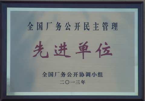 2013 National advanced unit of open and democratic management of factory affairs
